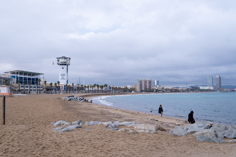 After lunch, I took the bus to Barceloneta. It was a quiet weekday, with few tourists, and a tranquil beach welcomed me with several waves. I spent around 30 minutes on the beach because it was empty, enjoying it and taking pictures.